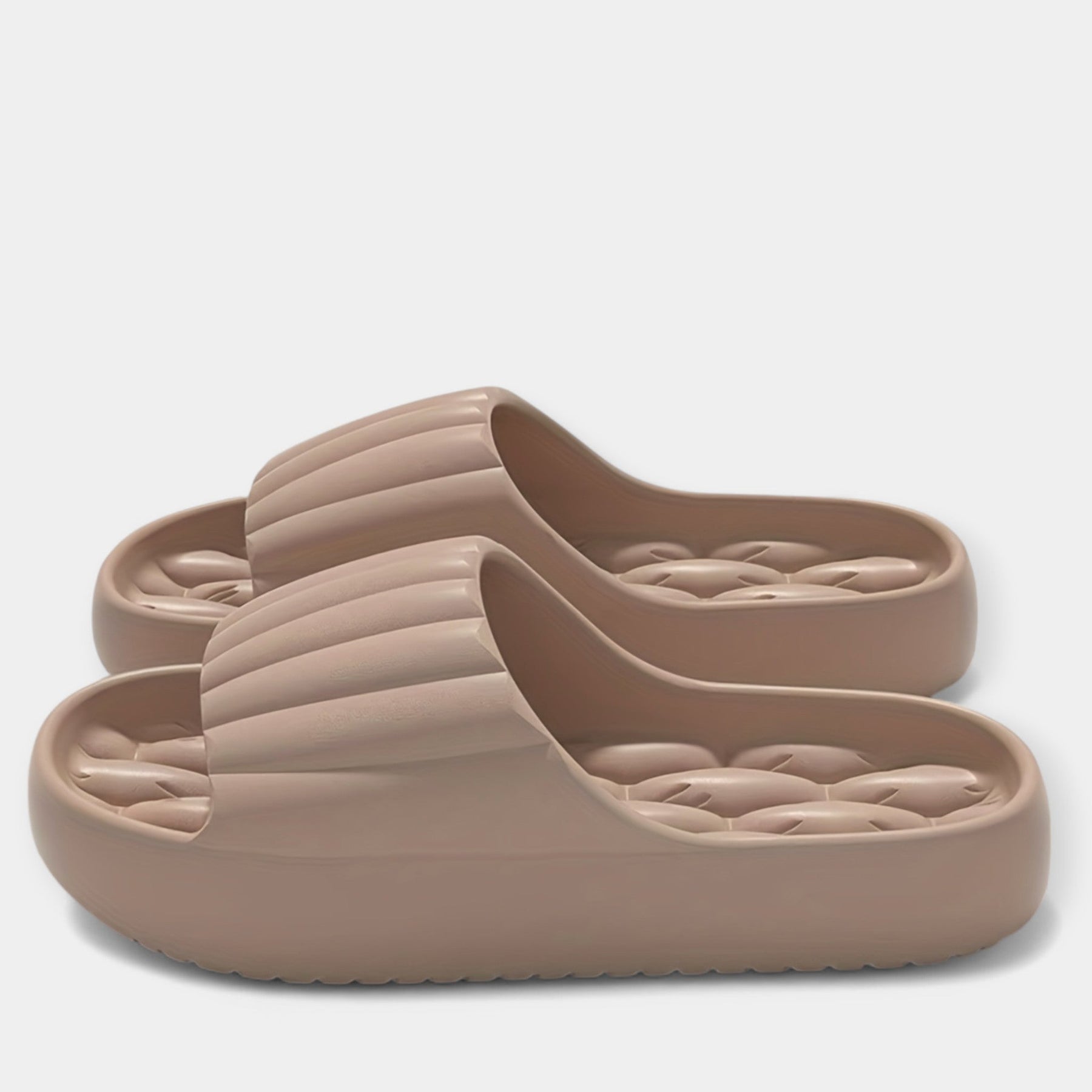Μαλακές και κομψές παντόφλες με στρογγυλή μύτη και αντιολισθητικό πάτο, ιδανικές για μέσα και έξω από το σπίτι.